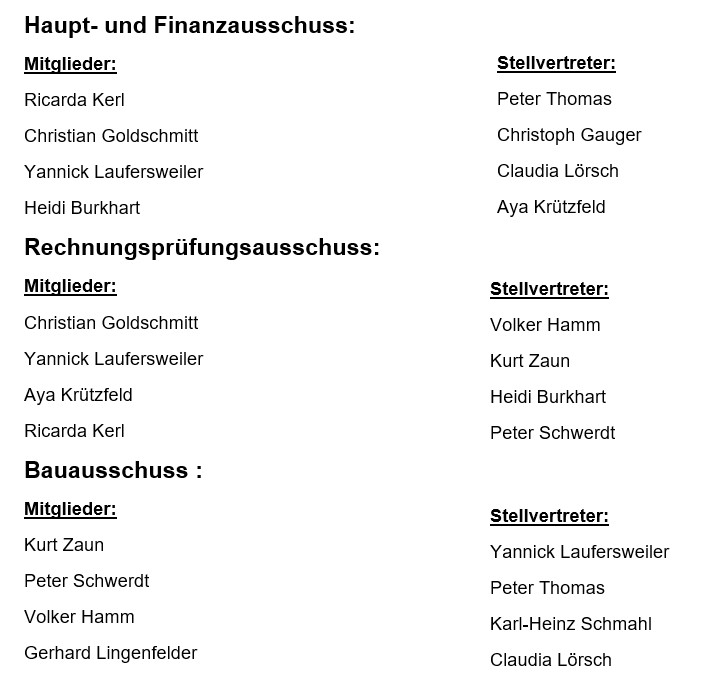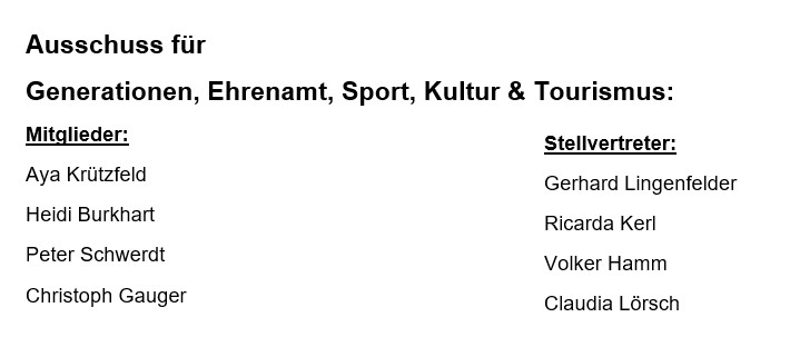 Die SPD-Fraktion wird in den Ausschüssen von kompetenten Personen unterstützt: